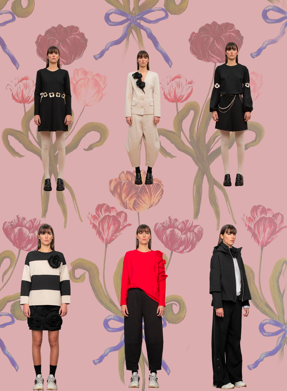una storia intensa e femminile. Fatta di silhouette e stampe coraggiose, dettagli delicati come fiori, sovrapposizioni tono su tono da vivere magnificamente.